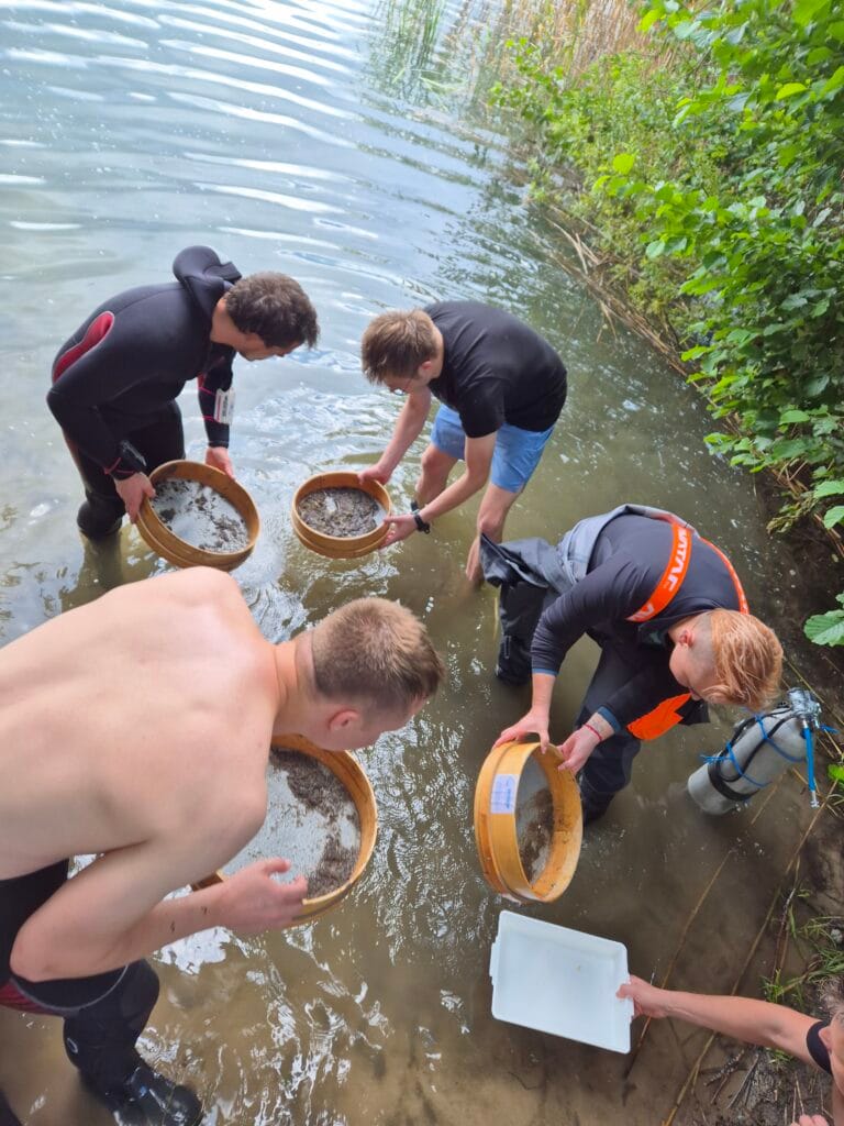 • oraz oznaczaliśmy granice fitolitoralu – czyli strefy przybrzeżnej zbiornika wodnego zarośniętej roślinnością. Każdy zespół wyznaczał swoją granicę przy pomocy bojek — to było coś więcej niż zwykłe nurkowanie. To było pierwsze zetknięcie z pracą „naukowca pod wodą”.