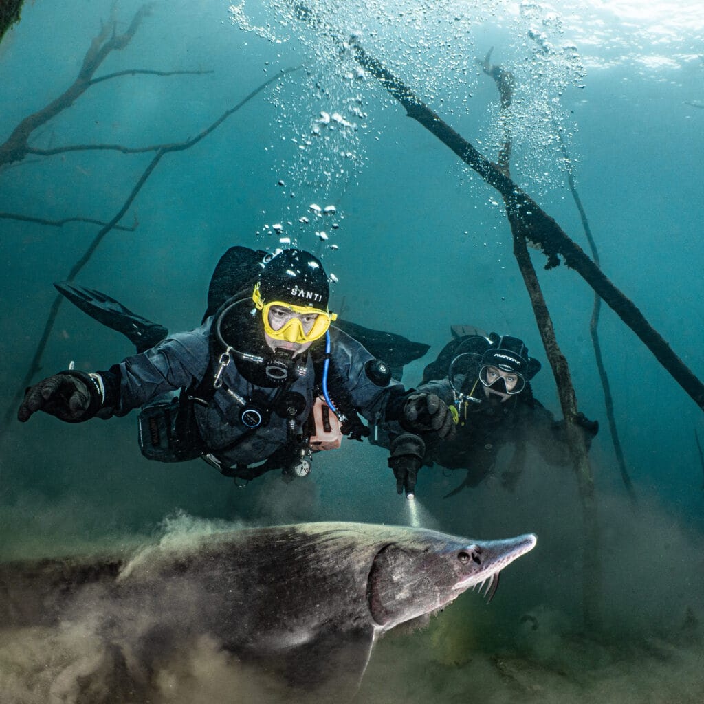 Trudno nie wspomnieć o tym momencie – już podczas pierwszego nurkowania takie emocje! Płynęłam z Martyną w ostatniej parze, gdy nagle gdzieś w oddali dostrzegłam dużą płetwę. Odwróciłam się do Martyny i od razu zobaczyłam, że ona też patrzy w tym samym kierunku. Bez słowa ruszyłyśmy tam i… pyk – piękny jesiotr! Matej również nie ukrywał zachwytu, a po wynurzeniu wszyscy wyszliśmy z wody z ogromnymi uśmiechami na twarzach. Zdecydowanie jedno z tych przeżyć, które zostają na długo.