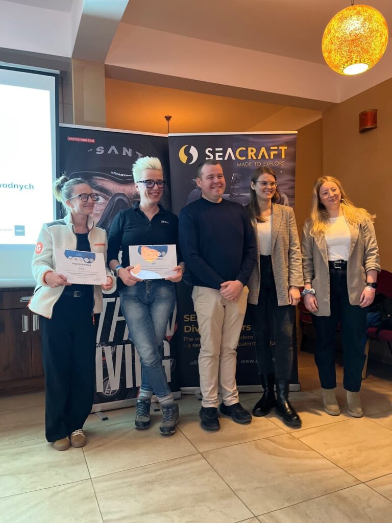 Największym zaskoczeniem całego wyjazdu był jednak moment, w którym… dostałam certyfikat „Nurek Ekolog”. Kurs robiłam latem, wspólnie z Michałem i Jerzym, ale jadąc na seminarium kompletnie nie spodziewałam się, że właśnie tutaj odbiorę certyfikat. Oczywiście uroczystość nie obyła się bez nurkowych tradycji – była więc „degustacja” z maski instruktora oraz uderzenia płetwą od wszystkich obecnych w sali instruktorów. Kto zna te obyczaje, ten wie, o co chodzi. Nie powiem, zabolało 😉